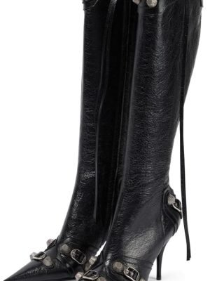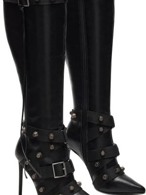 Stiletto Boots for Women Knee High Boots Pointy Toe High Heels Side Zipper Bucke Revets Tassel Boots Sexy Ladies Dressy Party Boots