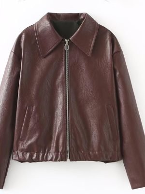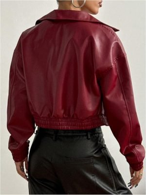 Faux Leather Jacket Women Motorcycle Zipper Bomber PU Bike Coat with Pockets
