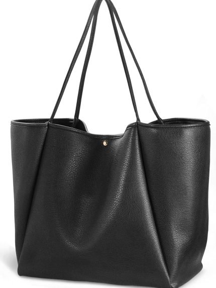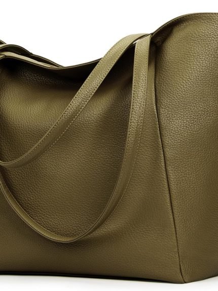 Large Tote Bag Vegan Leather Casual Zipper Work Bag Weekender Hobo for Women 23L Oversize Shoulder Travel Purse