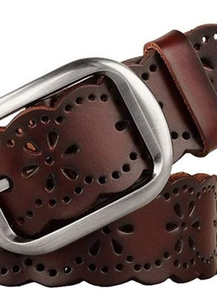 Women Hollow Flower Genuine Leather Belt for Jeans Pants Wide Belt for Ladies