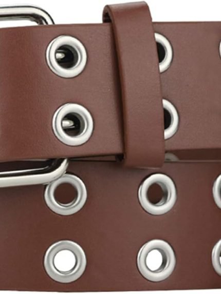 Grommet Leather Belts for Women, Black Belt Women Men with Double Holes