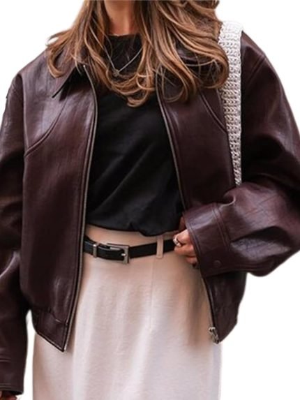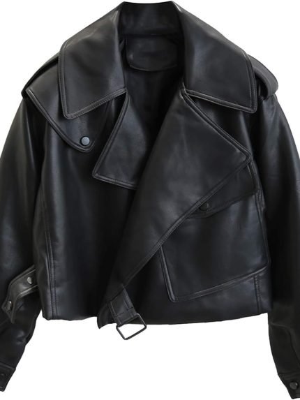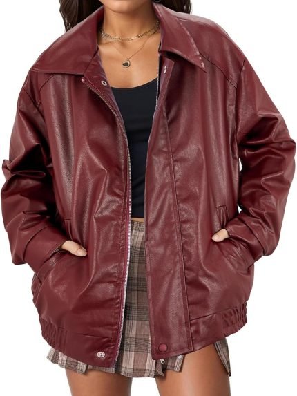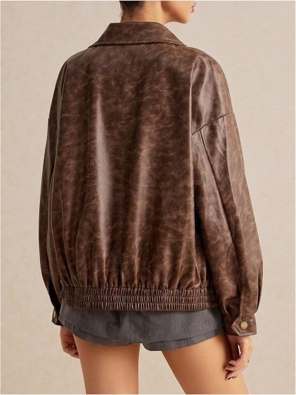 Leather Jacket Women Bomber Pleather Jacket Oversized Leather Blazer Biker Motorcycle Jacket