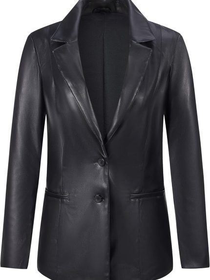 Women Faux Leather Blazer Jackets/ for Spring and Fall Fashion, Vegan Leather Button Down Coats