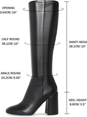 Women Knee High Boots Faux Leather Square To Tall Boots Fashion Chunky Block Heel Long Boots with Side Zip