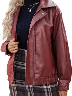 Leather Jacket Women Faux Leather Motorcycle Jacket Zip Up Bomber Jacket Coat Outerwear