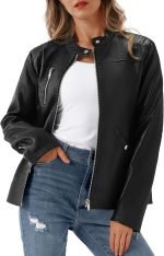 Faux Leather Jackets for Women, Black Vegan Jackets Moto Biker Motorcycle Coat