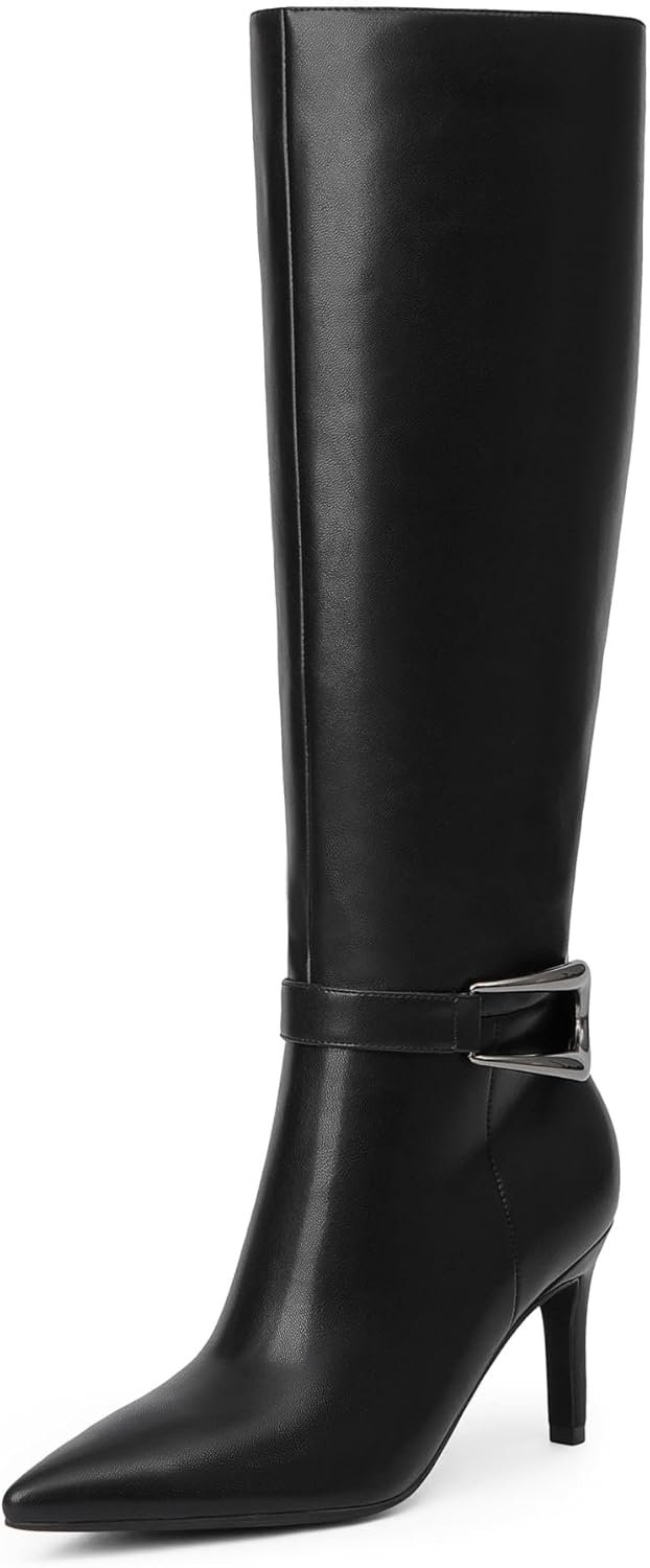- 【A Staple In Your Wardrobe】:With 3 inches high heel and pointed toe, these knee high boots are modern and tasteful sexy items, go well with your favorite dresses, skirts of any length, jeans and shorts.