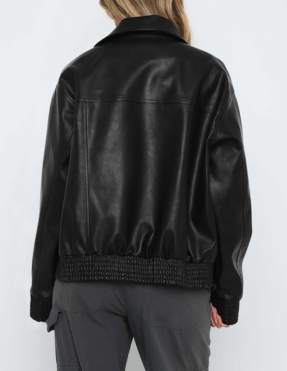 - Features- Long sleeve, full zip up, lapel design, front pockets, This women faux leather jacket is a must-have for spring 2025. Leather design is both flattering and on-trend. The convenient pocket adds functionality and adds a modern touch to the overall design