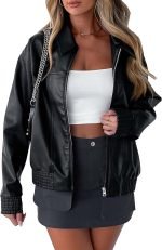 Women Faux Leather Jackets Long Sleeve Zipper Oversized Motorcycle Biker Coat Trendy Travel Casual Outfits