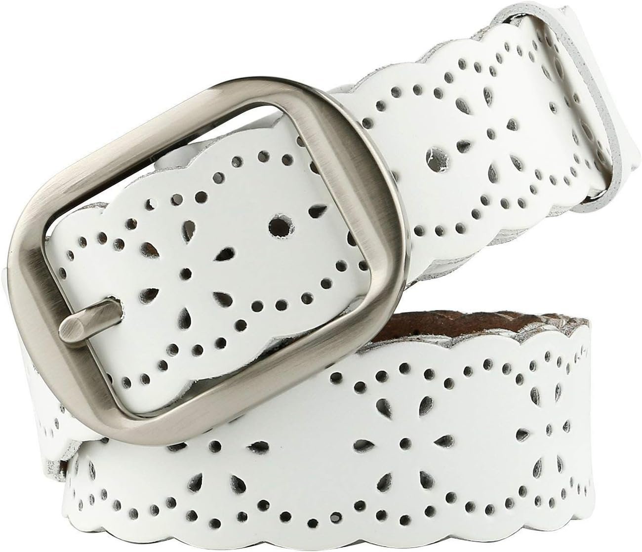 - Women Wide Belt made of high quality leather that touch so soft and durable. The metal buckle is polish surface without blemishes that always keep shiny. The flower cuts are very precise and have no residual flakes of leather.