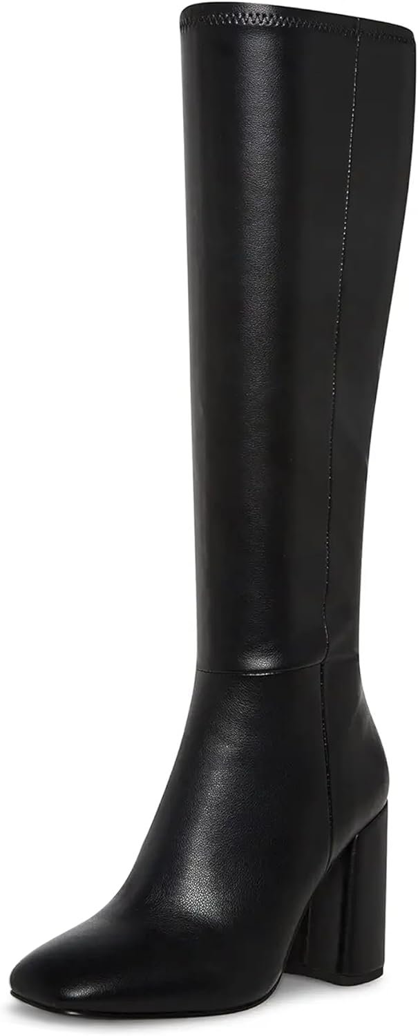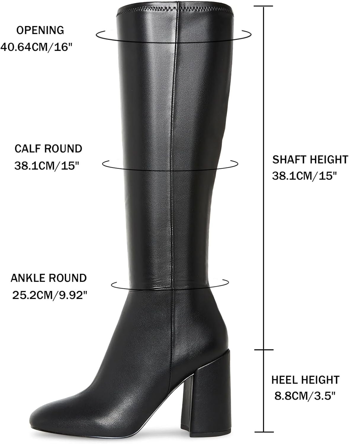 Women Knee High Boots Faux Leather Square To Tall Boots Fashion Chunky Block Heel Long Boots with Side Zip