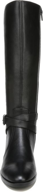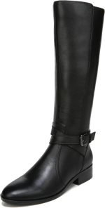 - Wide calf knee high riding boot for women with polished straps and buckles