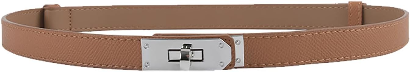 Women Skinny Leather Belt with Adjustable Silver Turn-Lock Buckle – Ideal for Dresses, Jeans, and Coats, Black