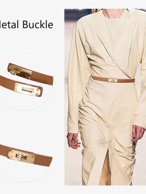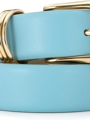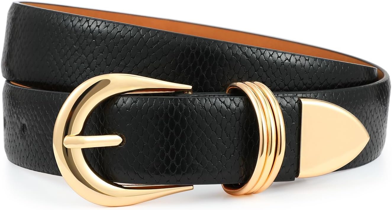Women Leather Belts with Gold Buckle Fashion Leather Waist Belt Elegant Ladies Belts for Jeans Dress & Casual Wear