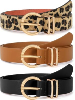 3 Pack Women Leather Belts for Jeans Dresses Ladies Waist Belt with Fashion Gold Buckle