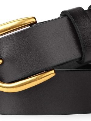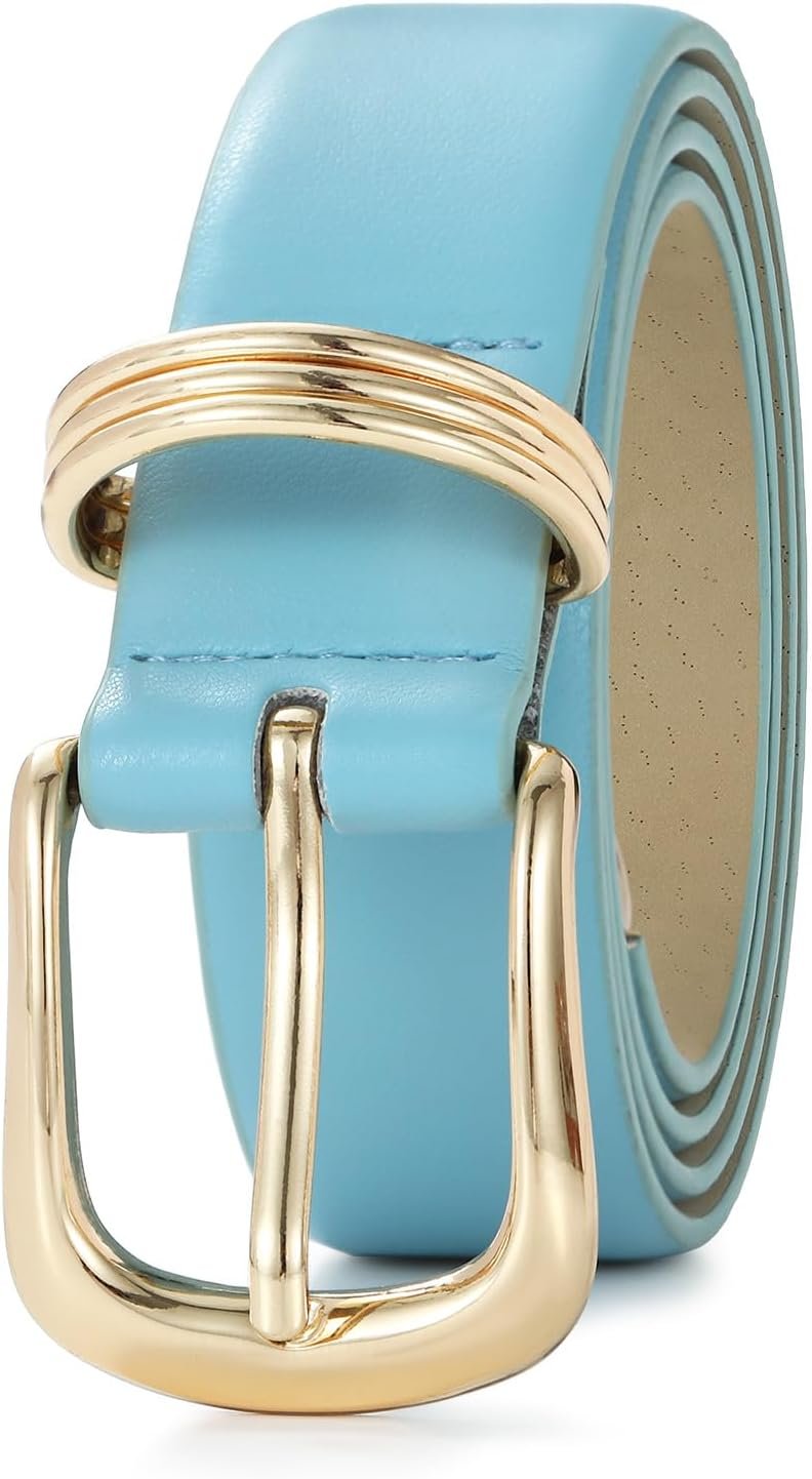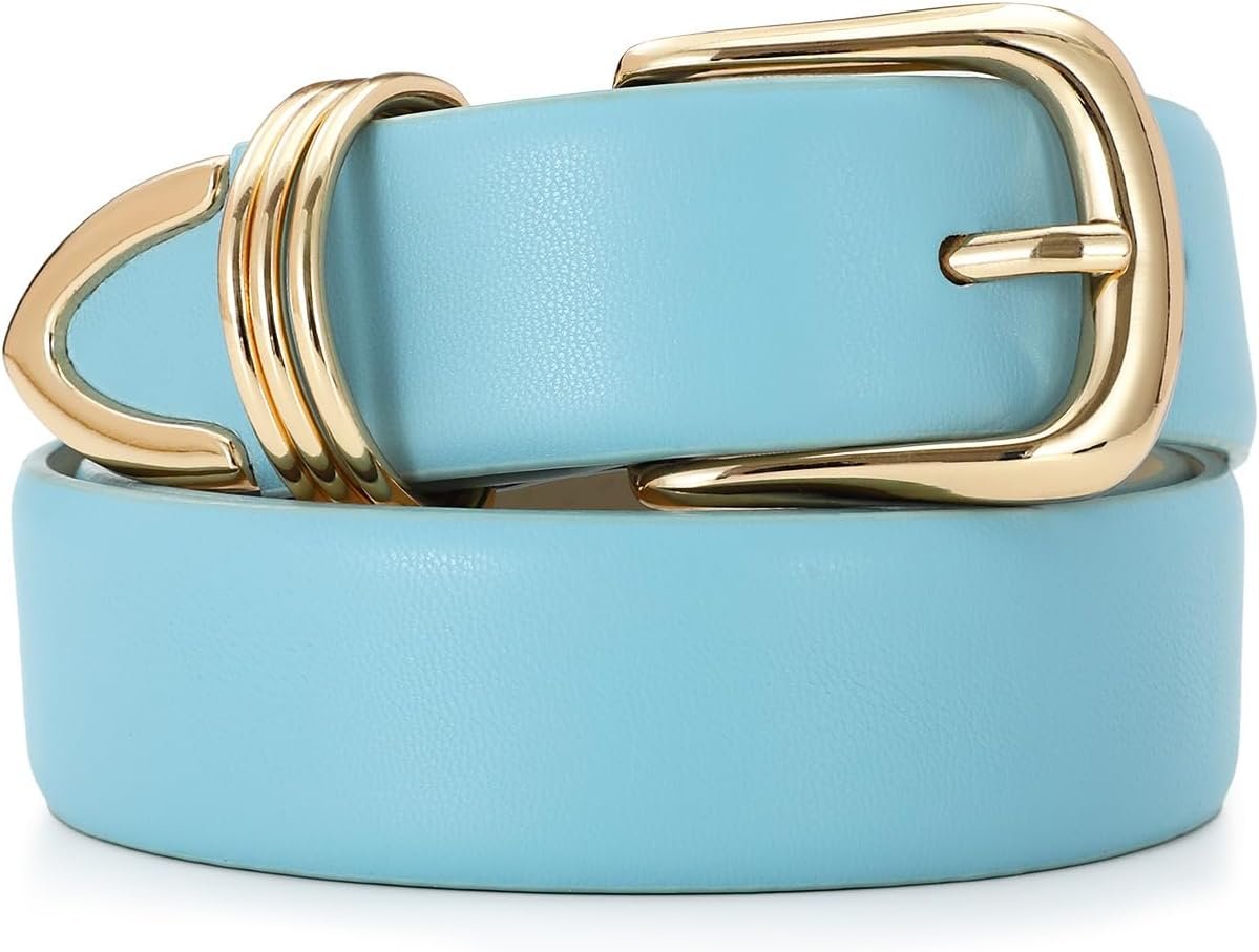 Women Leather Belts with Gold Buckle Fashion Leather Waist Belt Elegant Ladies Belts for Jeans Dress & Casual Wear