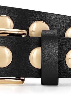 Women Fashion Leather Belt Punk Studded Belt for Jeans Pants Dresses