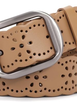 Women Hollow Flower Genuine Leather Belt for Jeans Pants Wide Belt for Ladies