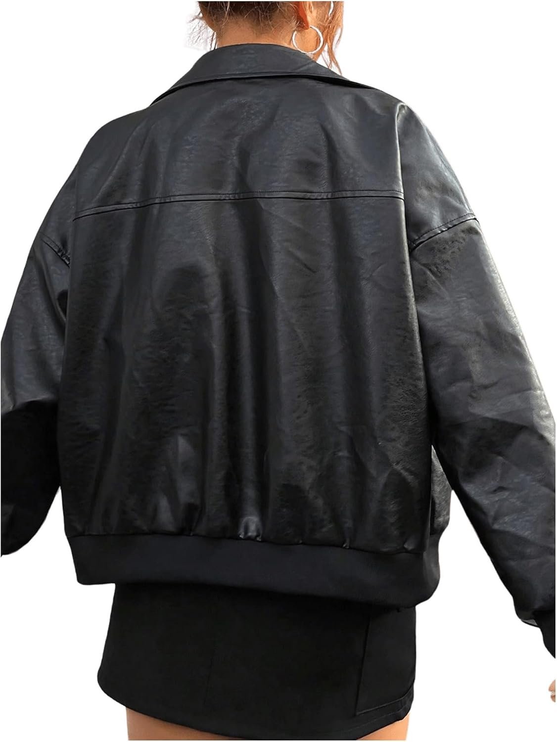 - Feature: Womens faux leather jacket, pocket, zipper, collared neck, drop shoulder, long sleeve, loose fit, chic and fashionable look that exudes confidence and attitude