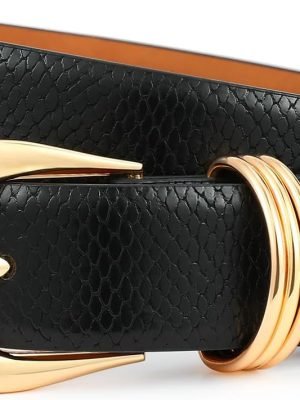Women Leather Belts with Gold Buckle Fashion Leather Waist Belt Elegant Ladies Belts for Jeans Dress & Casual Wear