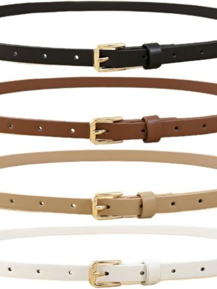 4 Pack Women Skinny Belts for Jeans Dress Thin Waist Belt for Ladies with Gold Buckle 0.55″ Width