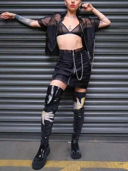 Black Thigh High Boots For Women Platform Over The Knee High Boots Lug Sole able Stretch Boots 6-11