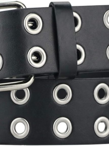 Grommet Leather Belts for Women, Black Belt Women Men with Double Holes
